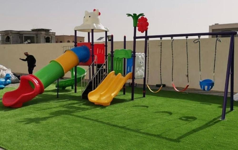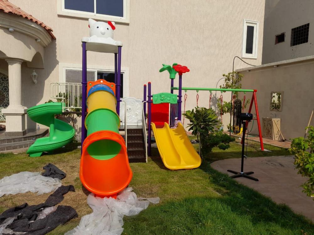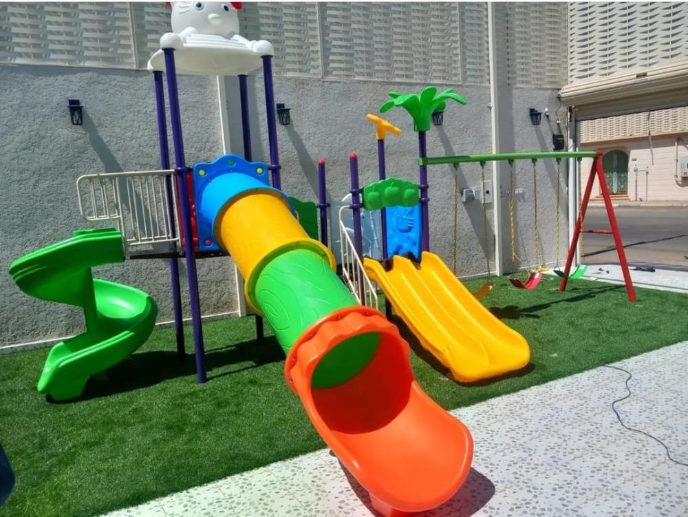 نقدم لعبة جماعية للاطفال ارجوحة وزحليقة بضمان لمدة 3 سنوات ضد عيوب التصنيع.